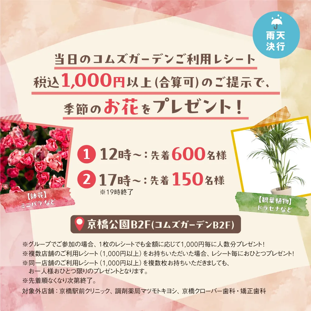 『コムズガーデンフラワープレゼントイベント(3月)』開催のご案内について